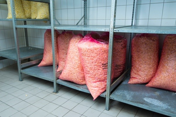 Die Belastung durch das Heben und Tragen der Zuckersäcke (25 kg), Maissäcke (10 bis 25 kg) und Öl-Gebinde (15 kg) muss im Rahmen der Gefährdungsbeurteilung betrachtet werden. Gegebenenfalls sind für den Transport der Zutaten zur Maschine und für das Befüllen Hilfsmittel zur Verfügung zu stellen.