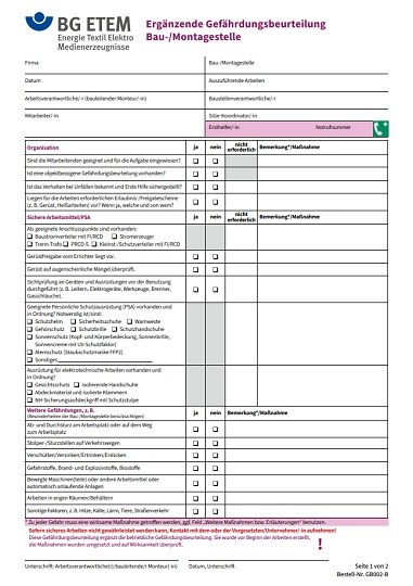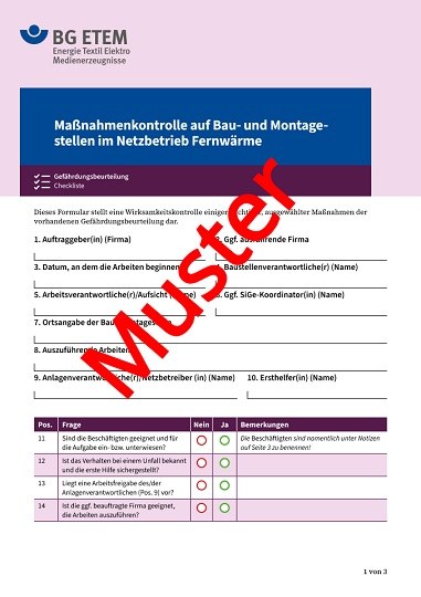 Die BG ETEM stellt Checklisten "Bau- und Montagestellen im Netzbetrieb" (SZ002) zur Verfügung.