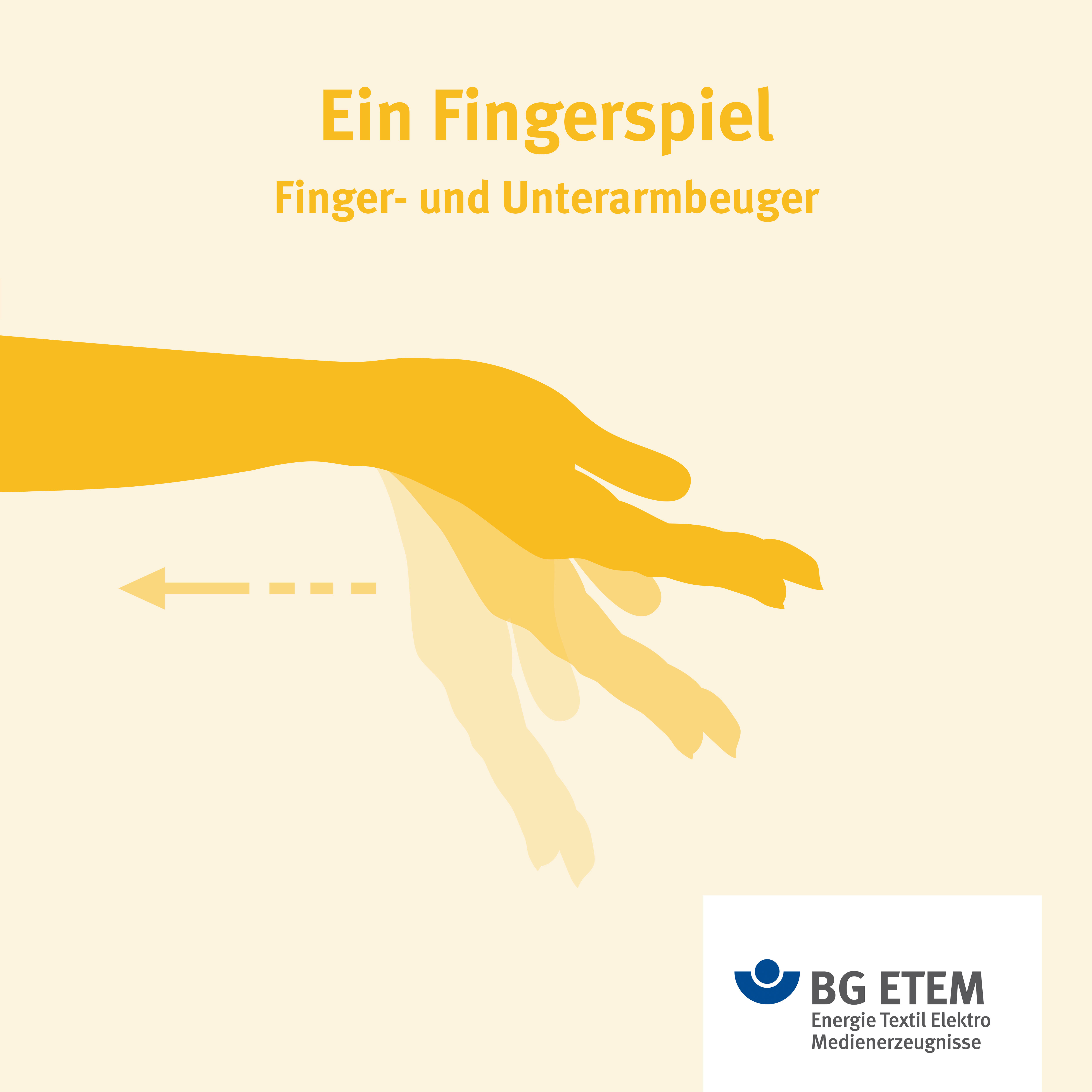 Ein Fingerspiel: Finger- und Unterarmbeugen entspannen. Also, hinsetzen und Arm nach vorne. Die Handflächen zeigen dabei nach oben. Fasse mit einer Hand die Finger der anderen und dehne sie vorsichtig nach unten, bis du ein Ziehen im Unterarm spürst. Das Ganze wiederholst du zwei- bis dreimal pro Seite.