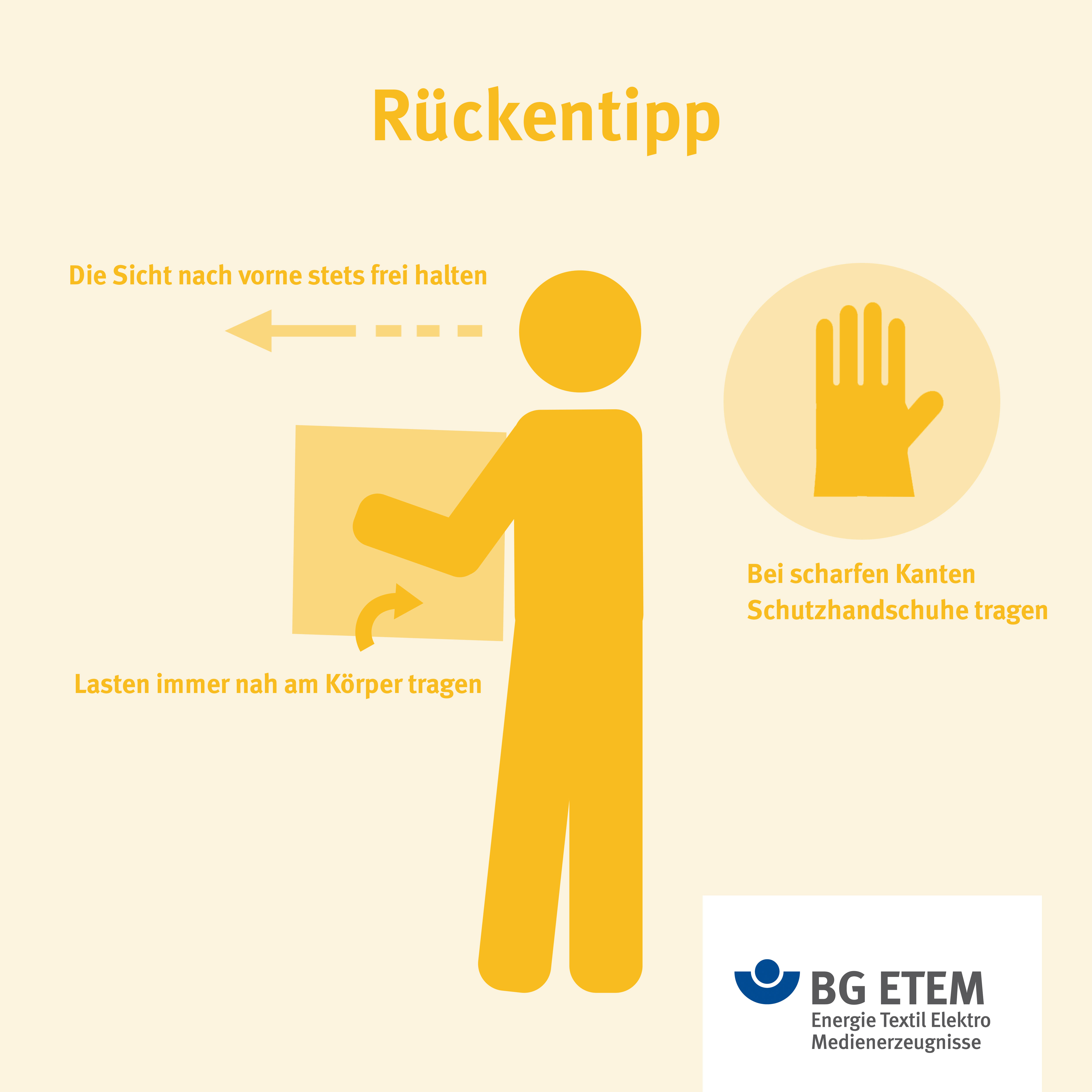 Die hier veröffentlichten Grafiken sind urheberrechtlich geschützt. Mitgliedsbetriebe der BG ETEM können sie für innerbetriebliche Zwecke nutzen (z. B. Gesundheitstage, Schulungen zur Arbeitssicherheit, etc).