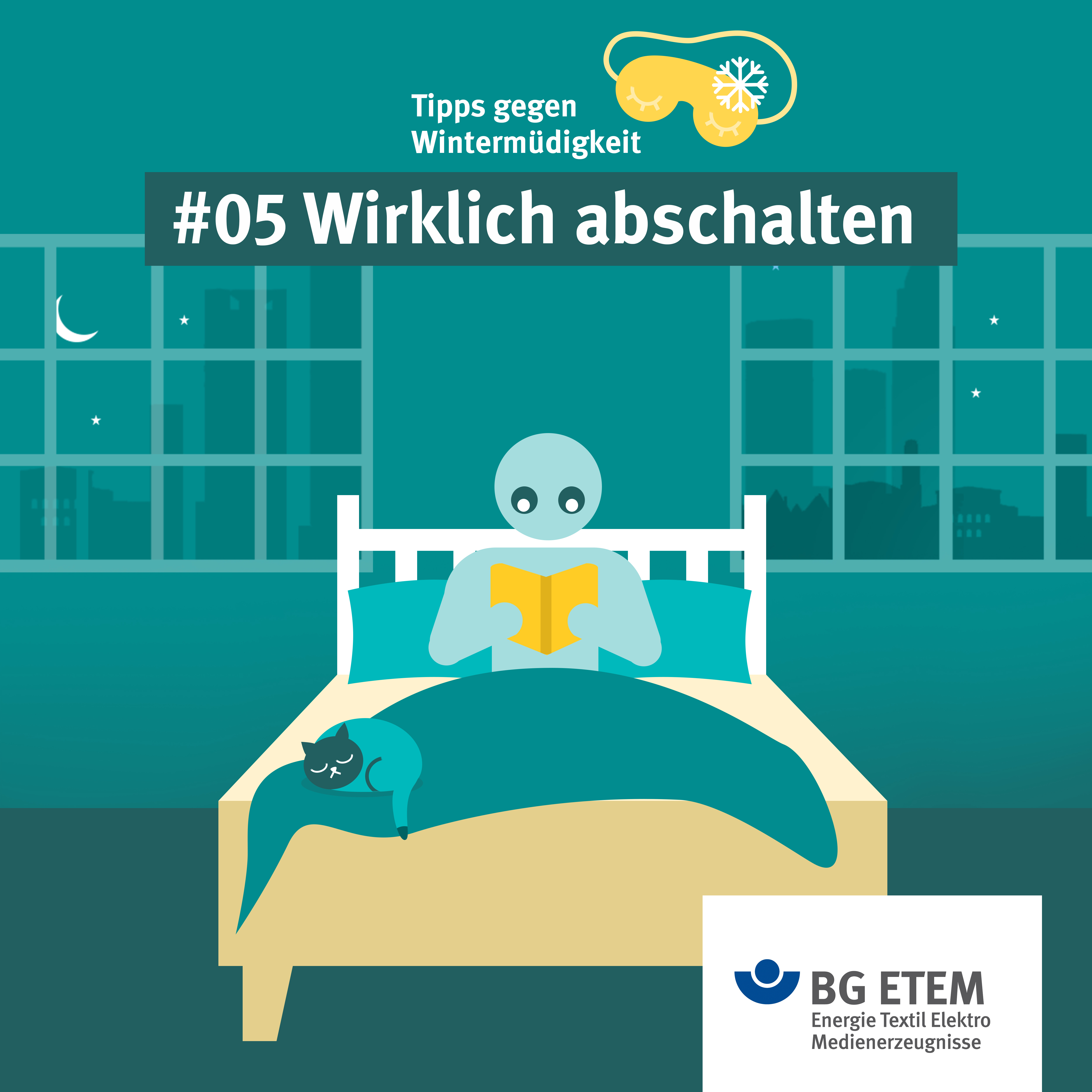 Unser Tipp gegen Wintermüdigkeit Nr. 5: Wirklich abschalten. Kurz vor dem Einschlafen auf Fernseher, Tablets oder euer Smartphone verzichten und vielleicht lieber mal ein gutes Buch lesen. Eure Kollegen freuen sich sicher auch über ein paar nette Buchtipps und man hat gleich neuen Gesprächsstoff für die Mittagspause.