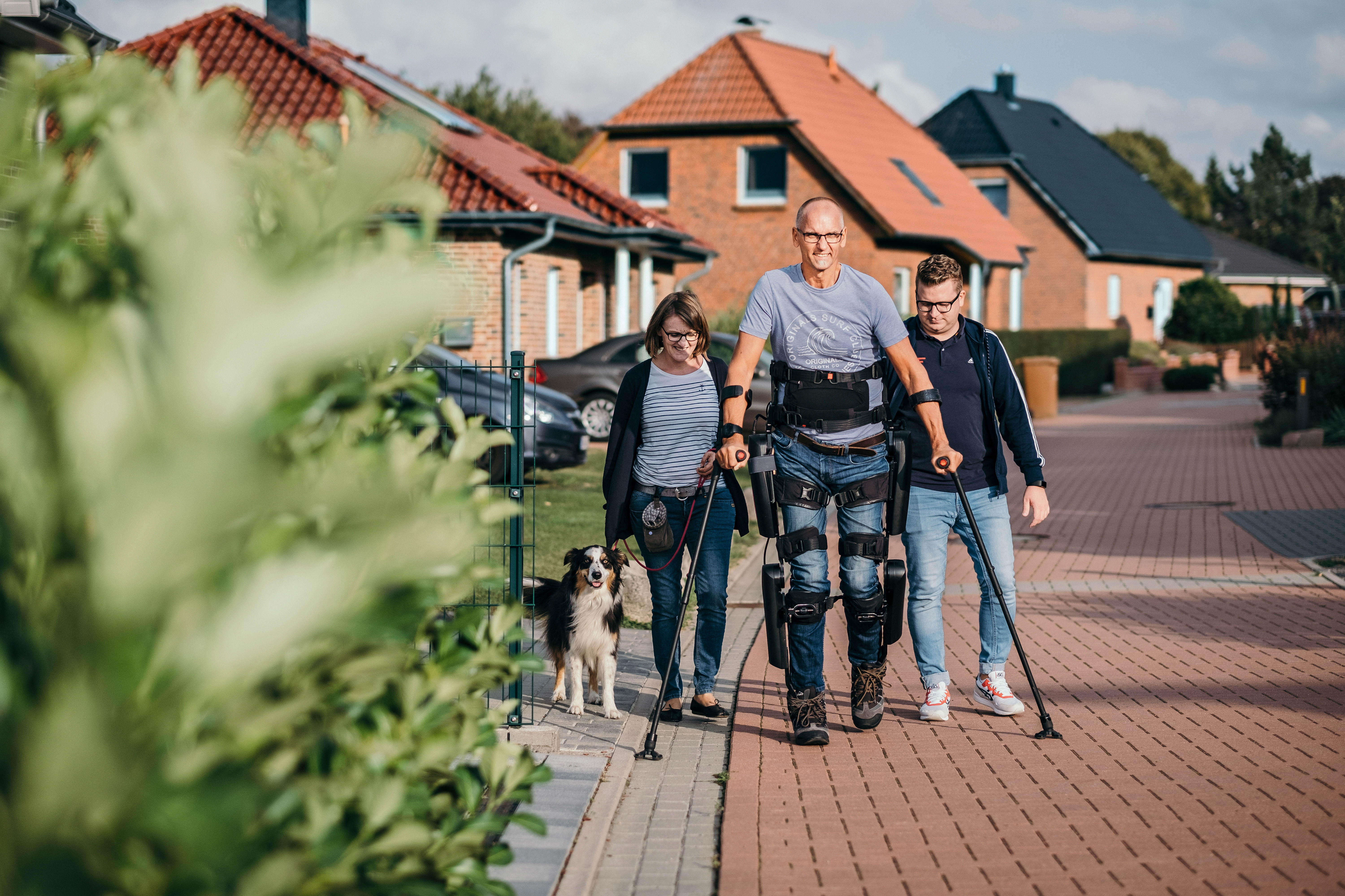 Seit dem Unfall wird Röhrmann von der Berufsgenossenschaft Energie Textil Elektro Medienerzeugnisse (BG ETEM) betreut. Die BG ETEM kümmert sich um die gesamte Heilbehandlung und zahlt eine Rente. "Das Exoskelett dient dem Ausgleich von Einschränkungen, die durch den Unfall entstanden sind", erläutert Mathias Wolf, der sich bei der BG ETEM um Thorsten Röhrmann kümmert.